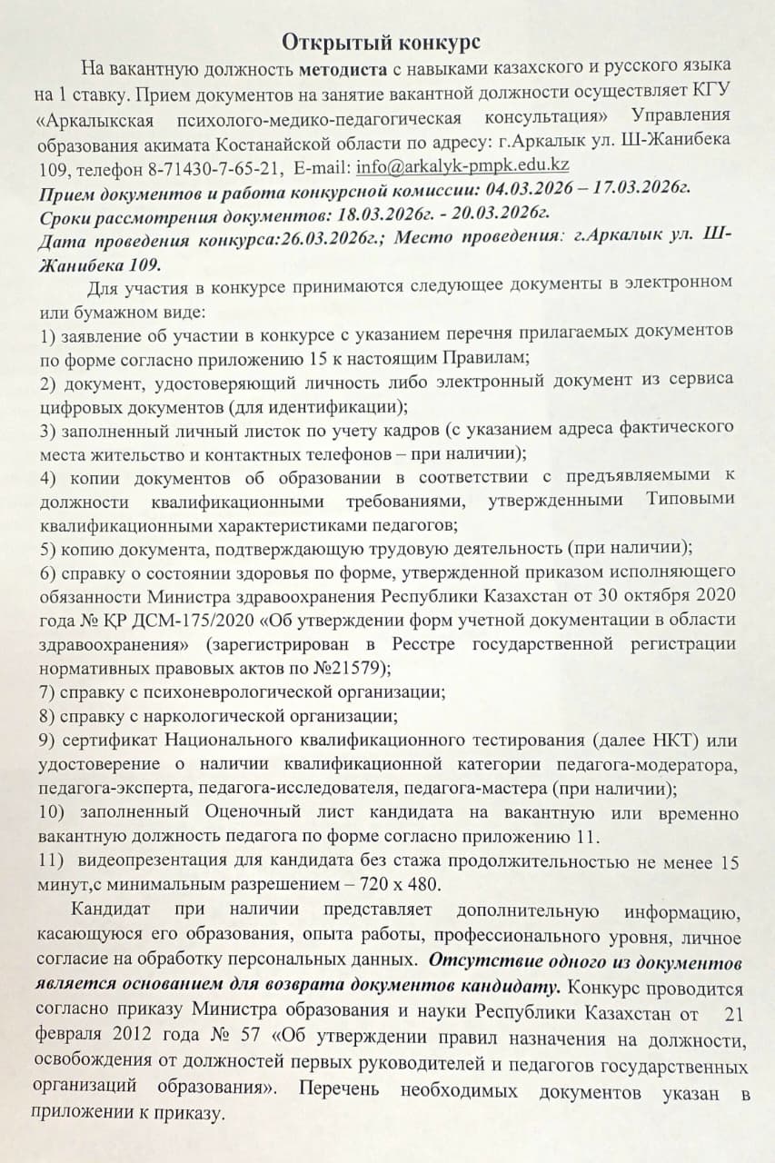 📢 Объявляется открытый конкурс на вакантную должность методиста (1 ставка)!